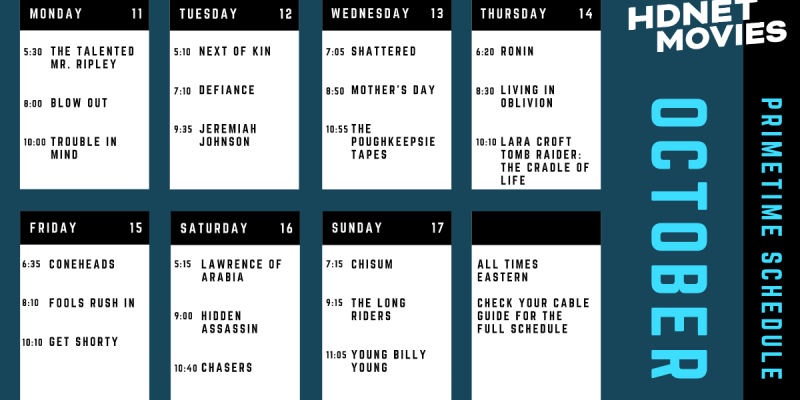 There will be a free preview of HDNET Movies on Dish Network from October 17th to November 1st. Here’s a schedule for HDNET Movies for October.